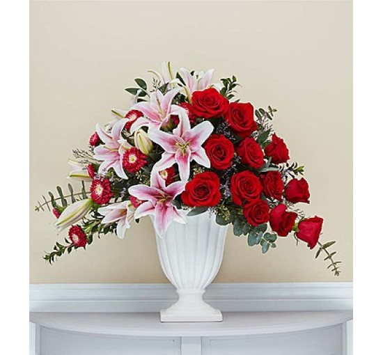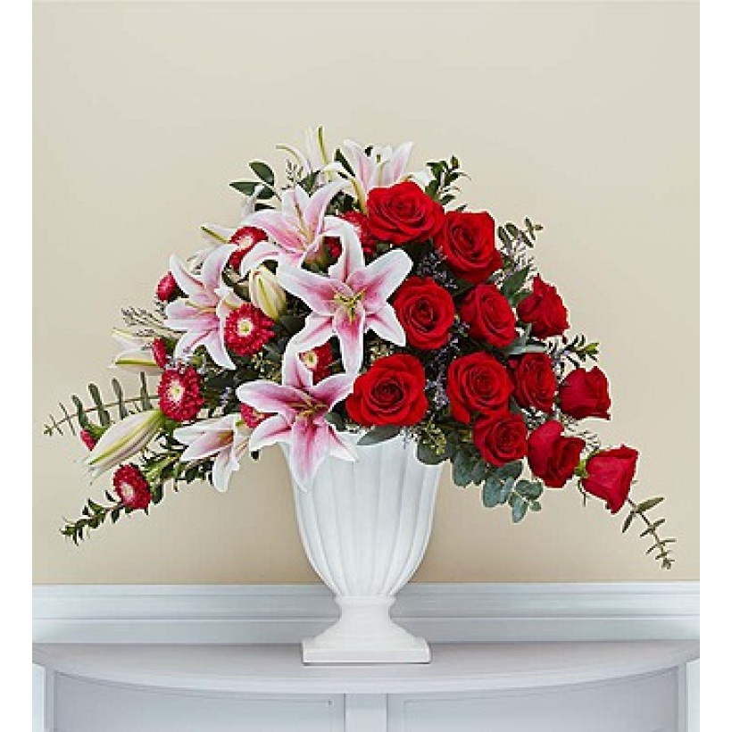 stunning and gracefully elegant asymmetrical arrangement of roses, Stargazer
