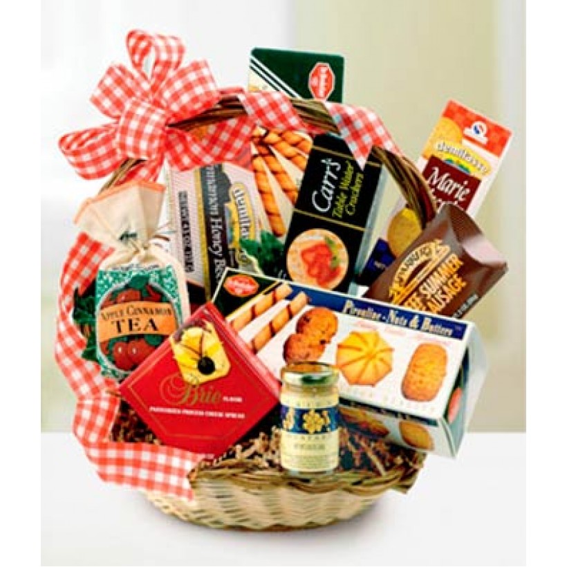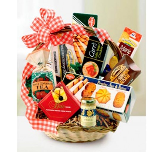 Great someone special with an overflowing array of gourmet gifts. Delivered in a woven basket, this is the perfect way to let them know you are thinking of them. Local florist arranged and delivered.